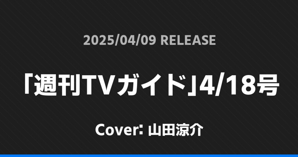 「週刊TVガイド」4/18号表紙は山田涼介!