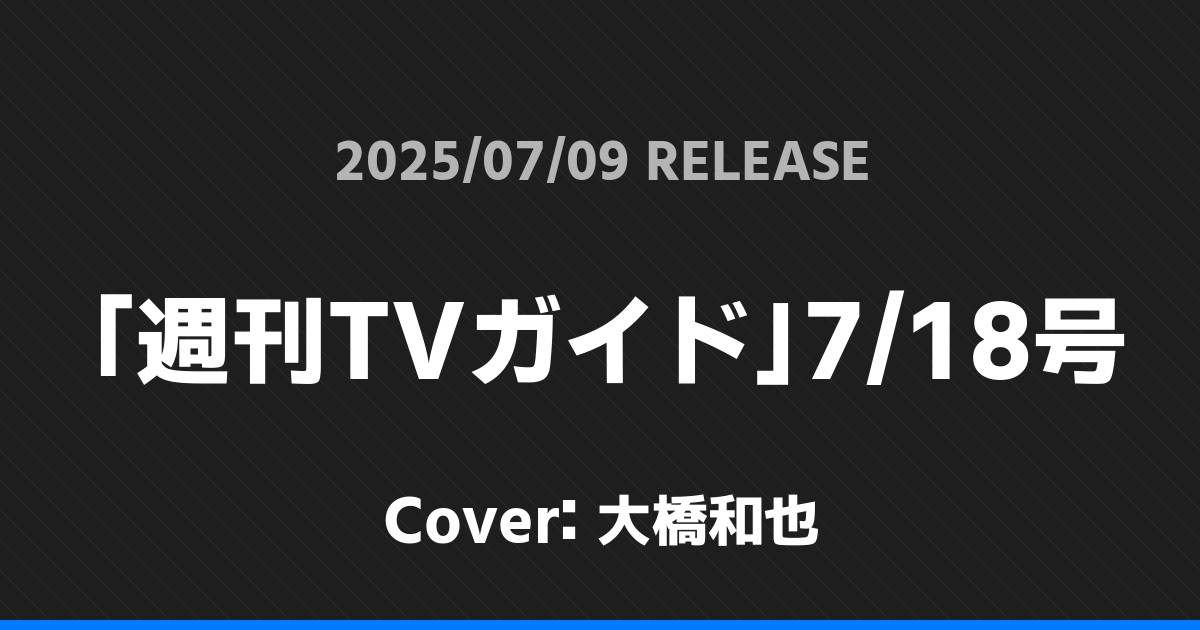 「週刊TVガイド」7/18号表紙は大橋和也!