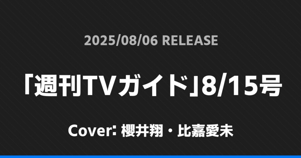 「週刊TVガイド」8/15号表紙は櫻井翔・比嘉愛未!