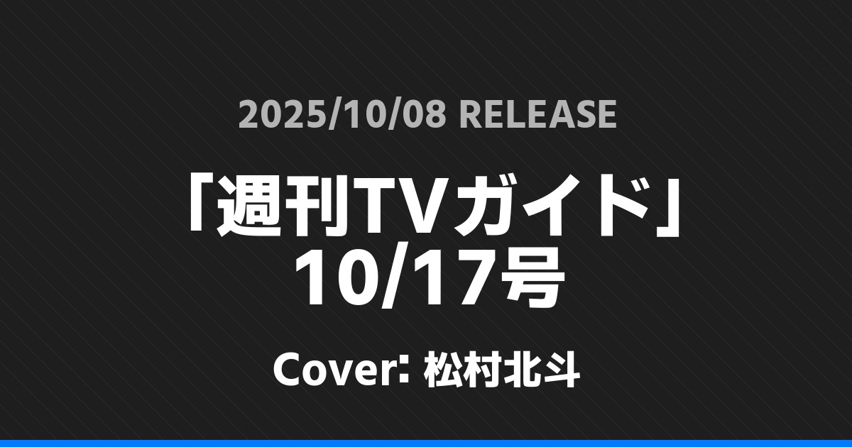 「週刊TVガイド」10/17号表紙は松村北斗! SixTONES 2026.01.24 ※本ページにはプロモーションが含まれています。 商品リンク Amazon 楽天ブックス セブンネット タワーレコード 詳細情報 発売日:2025/10/08 表紙:松村北斗 「週刊TVガイド」10/17号の表紙は松村北斗さんです! 「MEN’S NON-NO」11月号表紙は松村北斗! 「anan」No.2466表紙は松村北斗! ホームSixTONES