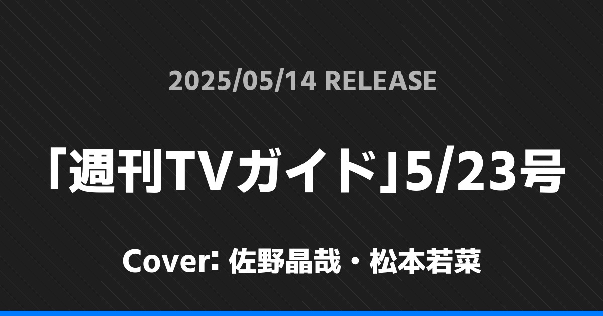 「週刊TVガイド」5/23号表紙は佐野晶哉・松本若菜!