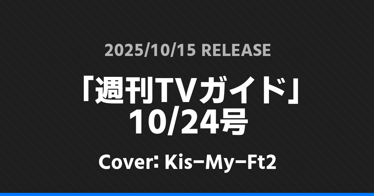 「週刊TVガイド」10/24号表紙はKis-My-Ft2!