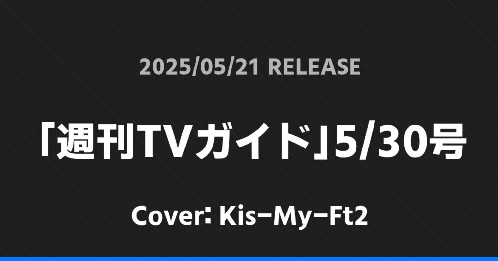 「週刊TVガイド」5/30号表紙はKis-My-Ft2!