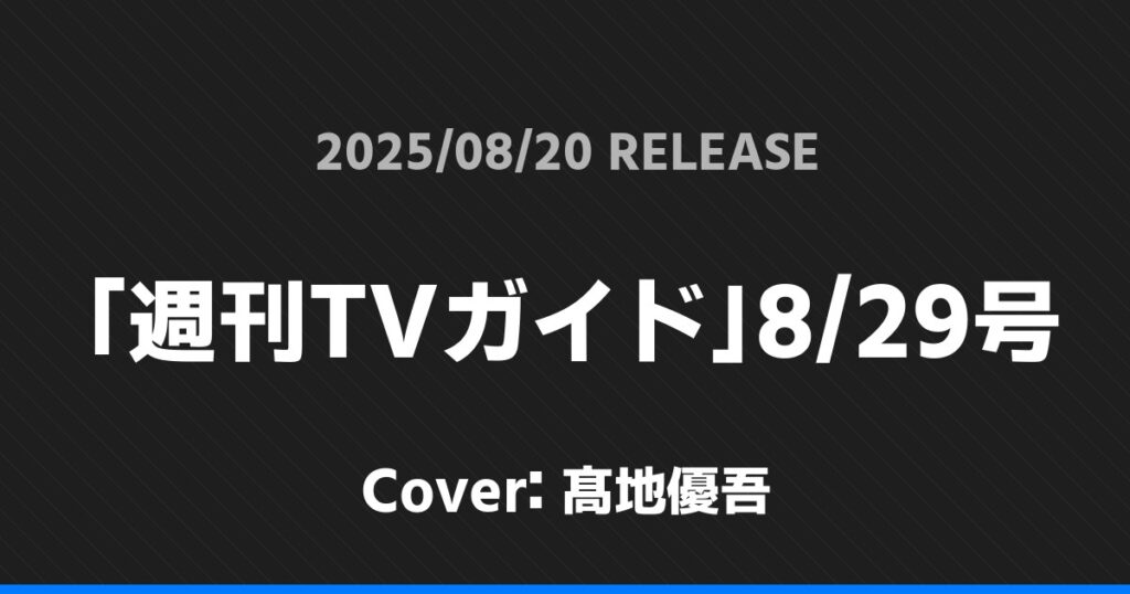 「週刊TVガイド」8/29号表紙は髙地優吾!