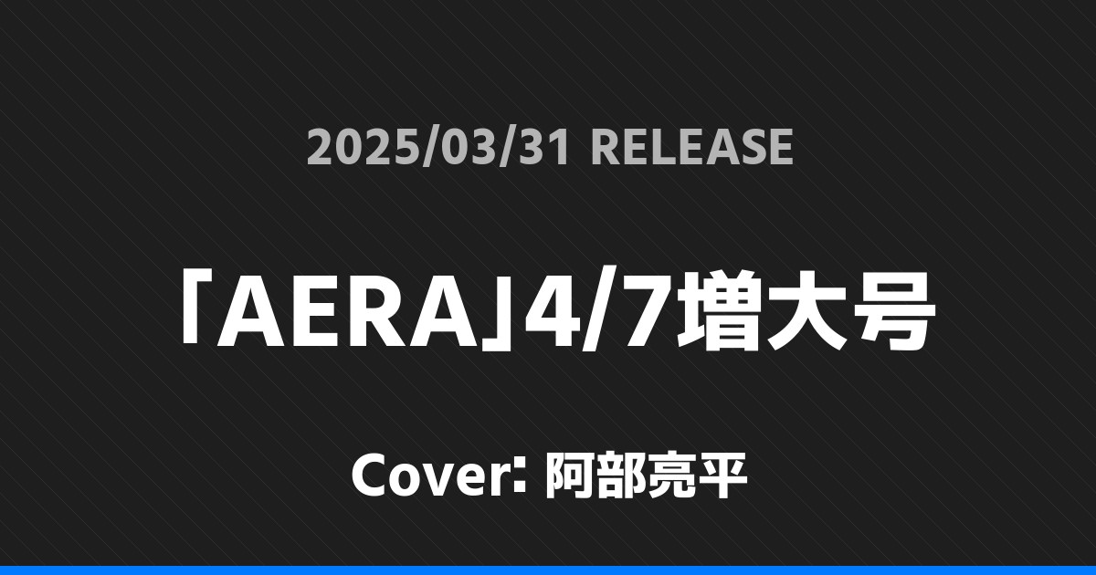 「AERA」4/7増大号表紙は阿部亮平! Snow Man 2026.01.24 ※本ページにはプロモーションが含まれています。 商品リンク Amazon 楽天ブックス セブンネット タワーレコード 詳細情報 発売日:2025/03/31 表紙:阿部亮平 「AERA」4/7増大号の表紙は阿部亮平さんです! 「FINEBOYS+GO! vol.2」表紙は中村嶺亜! 「MG」NO.28表紙はWEST.! ホームSnow Man