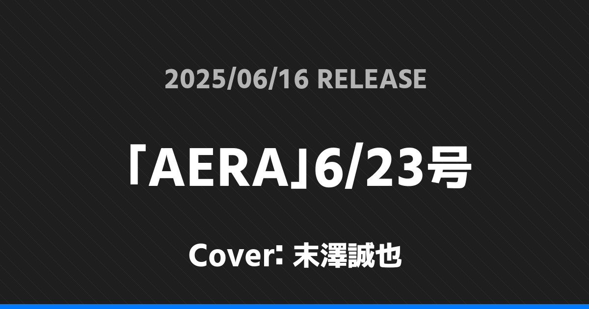 「AERA」6/23号表紙は末澤誠也! Aぇ! group 2026.01.24 ※本ページにはプロモーションが含まれています。 商品リンク Amazon 楽天ブックス セブンネット タワーレコード 詳細情報 発売日:2025/06/16 表紙:末澤誠也 「AERA」6/23号の表紙は末澤誠也さんです! 「別冊マーガレット」7月号表紙は大橋和也・畑芽育! 「S Cawaii!」8月号表紙は大橋和也! ホームAぇ! group