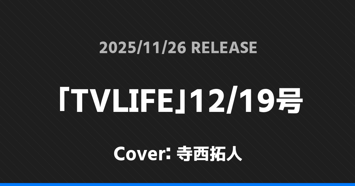 「TVLIFE」12/19号表紙は寺西拓人! timelesz 2026.01.24 ※本ページにはプロモーションが含まれています。 商品リンク Amazon 楽天ブックス セブンネット タワーレコード 詳細情報 発売日:2025/11/26 表紙:寺西拓人 「TVLIFE」12/19号の表紙は寺西拓人さんです! 「anan」No.2473表紙はHey! Say! JUMP! 「週刊TVガイド」12/5号表紙は玉森裕太! ホームtimelesz