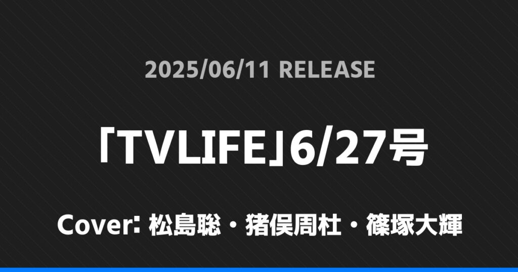 「TVLIFE」6/27号の表紙は松島聡・猪俣周杜・篠塚大輝さんです!