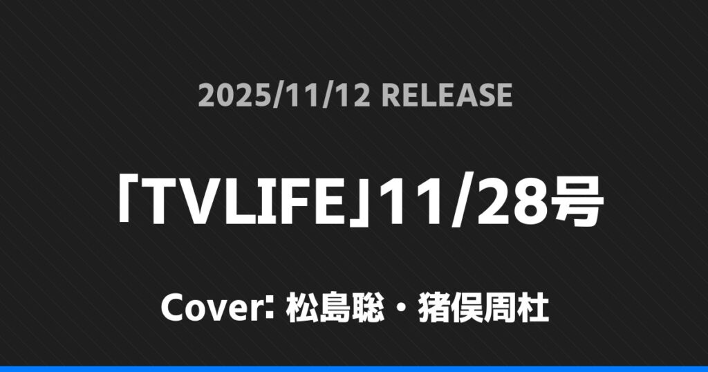 「TVLIFE」11/28号表紙は松島聡・猪俣周杜!