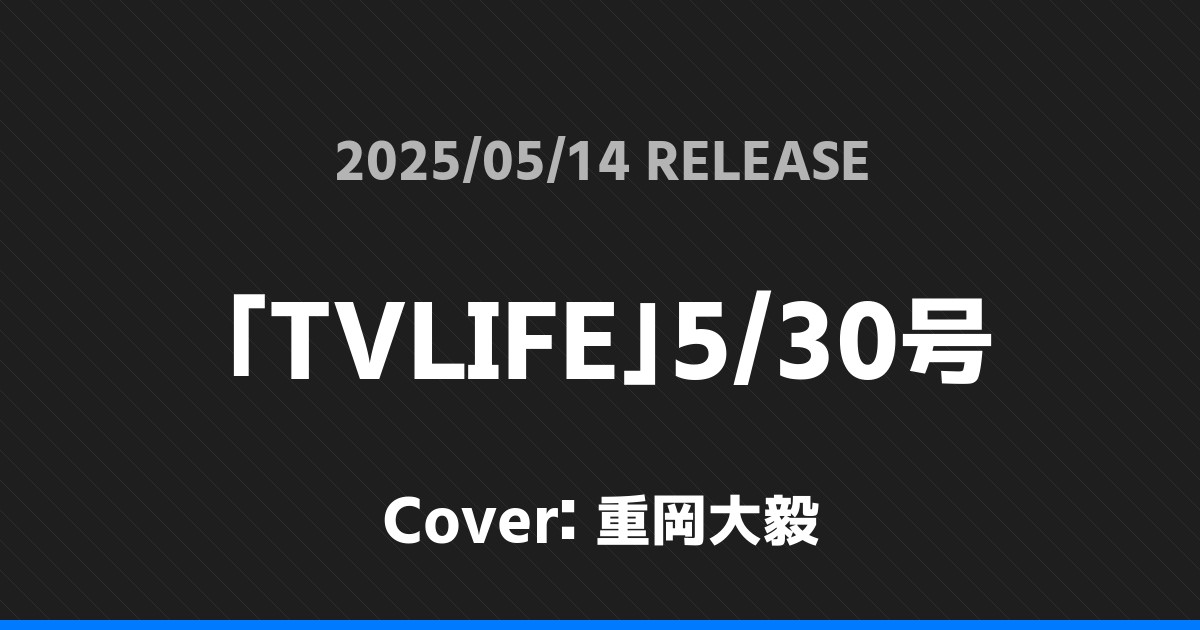「TVLIFE」5/30号表紙は重岡大毅! WEST. 2026.01.24 ※本ページにはプロモーションが含まれています。 商品リンク Amazon 楽天ブックス セブンネット タワーレコード 詳細情報 発売日:2025/05/14 表紙:重岡大毅 「TVLIFE」5/30号の表紙は重岡大毅さんです! 「STAGE navi」vol.101表紙は寺西拓人・太田基裕! 「TVガイドPERSON」Vol.153表紙はKis-My-Ft2! ホームWEST.