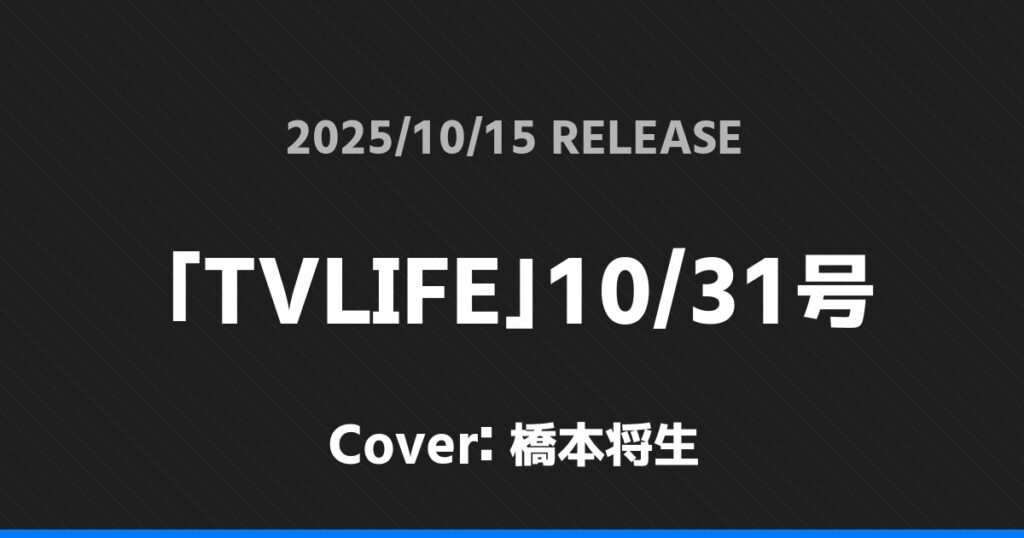 「TVLIFE」10/31号の表紙は橋本将生さんです!