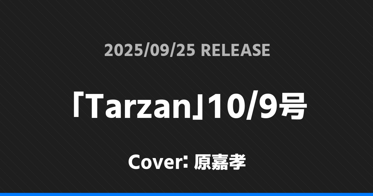 「Tarzan」10/9号表紙は原嘉孝!
