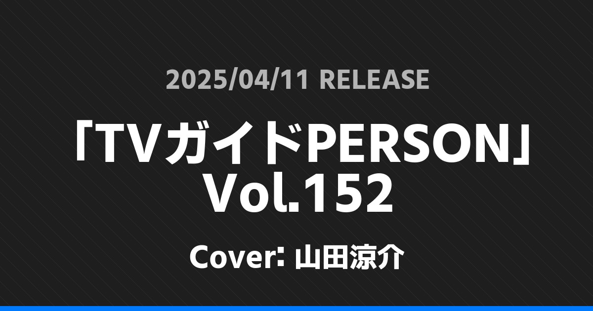 「TVガイドPERSON」Vol.152表紙は山田涼介! Hey! Say! JUMP 2026.01.24 ※本ページにはプロモーションが含まれています。 商品リンク Amazon 楽天ブックス セブンネット タワーレコード 詳細情報 発売日:2025/04/11 表紙:山田涼介 「TVガイドPERSON」Vol.152の表紙は山田涼介さんです! 「TVLIFE」4/25号表紙は山田涼介! 「up PLUS」5月号表紙は井上瑞稀・中村嶺亜! ホームHey! Say! JUMP