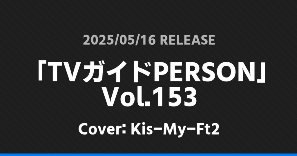 「TVガイドPERSON」Vol.153の表紙はKis-My-Ft2さんです!