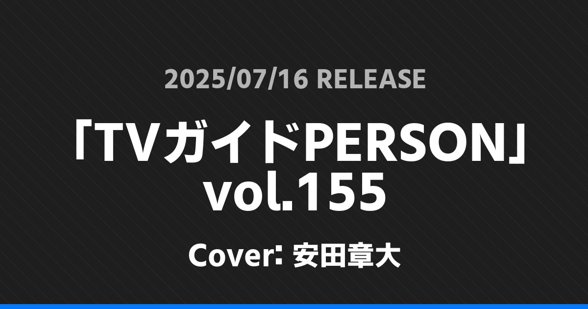 「TVガイドPERSON」vol.155表紙は安田章大! SUPER EIGHT 2026.01.24 ※本ページにはプロモーションが含まれています。 商品リンク Amazon 楽天ブックス セブンネット タワーレコード 詳細情報 発売日:2025/07/16 表紙:安田章大 「TVガイドPERSON」vol.155の表紙は安田章大さんです! 「週刊TVガイド」7/25号表紙は深澤辰哉・斎藤工・永尾柚乃! 「AERA」7/28号表紙は渡辺翔太! ホームSUPER EIGHT