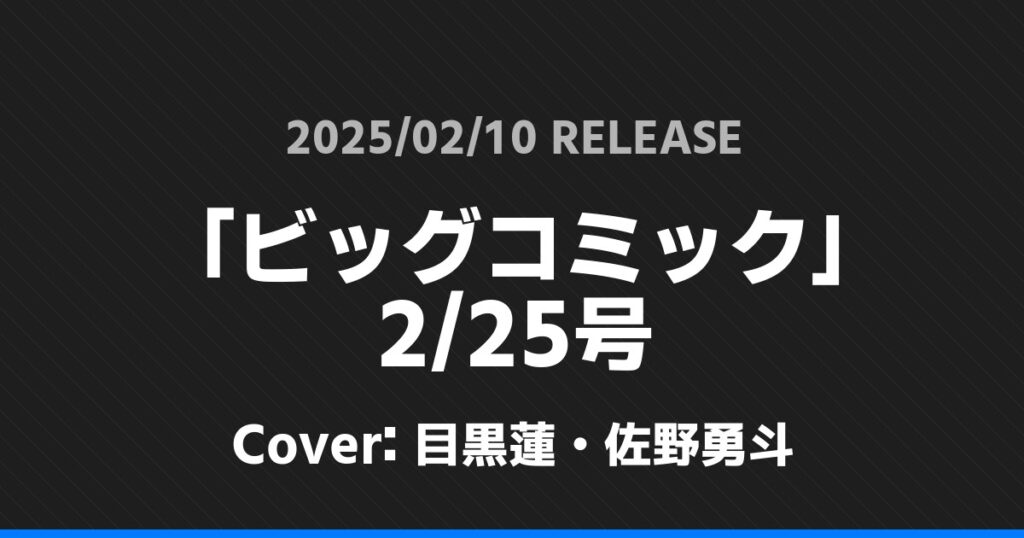 「ビッグコミック」2/25号の表紙は目黒蓮・佐野勇斗さんです!
