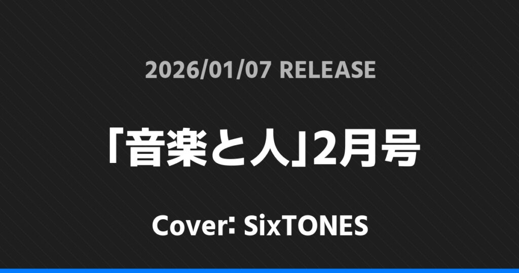 「音楽と人」2月号の表紙はSixTONESさんです!