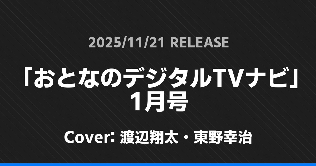 「おとなのデジタルTVナビ」1月号の表紙は渡辺翔太・東野幸治さんです!