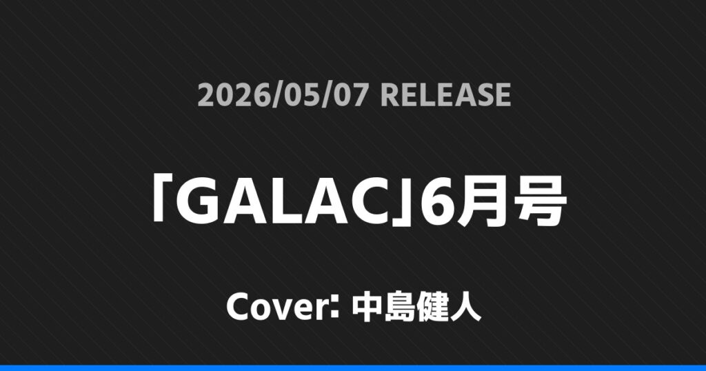 「GALAC」6月号表紙は中島健人! 無所属 2026.04.01 ※本ページにはプロモーションが含まれています。 商品リンク Amazon 楽天ブックス セブンネット タワーレコード 詳細情報 発売日:2026/05/07 表紙:中島健人 「GALAC」6月号の表紙は中島健人さんです! スポンサーリンク 「Men’s PREPPY」6月号表紙は宮舘涼太! ホーム無所属