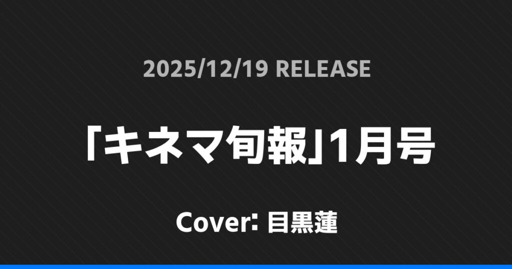 「キネマ旬報」1月号表紙は目黒蓮! Snow Man 2026.01.24 ※本ページにはプロモーションが含まれています。 商品リンク Amazon 楽天ブックス セブンネット タワーレコード 詳細情報 発売日:2025/12/19 表紙:目黒蓮 「キネマ旬報」1月号の表紙は目黒蓮さんです! 「STAGE navi」Vol.107表紙は橋本将生! 「東京カレンダー」2月号特別増刊表紙はAぇ! group! ホームSnow Man