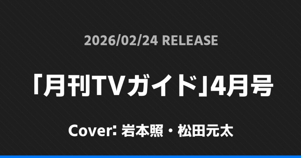 「月刊TVガイド」4月号表紙は岩本照・松田元太!