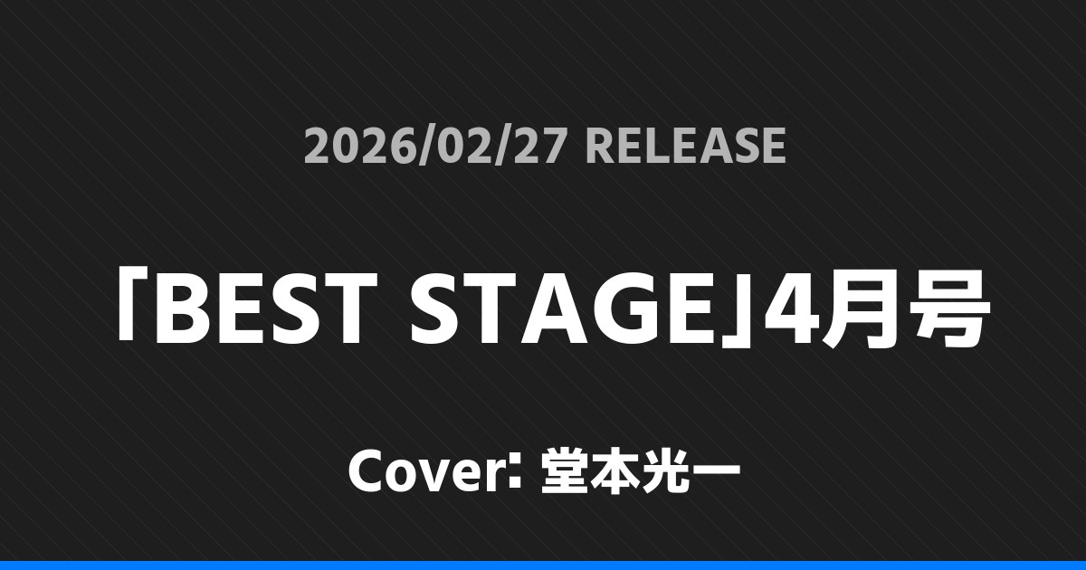 「BEST STAGE」4月号表紙は堂本光一! DOMOTO 2026.02.192026.02.27 ※本ページにはプロモーションが含まれています。 商品リンク Amazon 楽天ブックス セブンネット タワーレコード 詳細情報 発売日:2026/02/27 表紙:堂本光一 「BEST STAGE」4月号の表紙は堂本光一さんです! https://twitter.com/Best_Stage/status/2024349557191221321?s=20 スポンサーリンク 「BARFOUT!」4月号表紙は道枝駿佑! 「Myojo」5月号表紙はKing & Prince! ホームDOMOTO