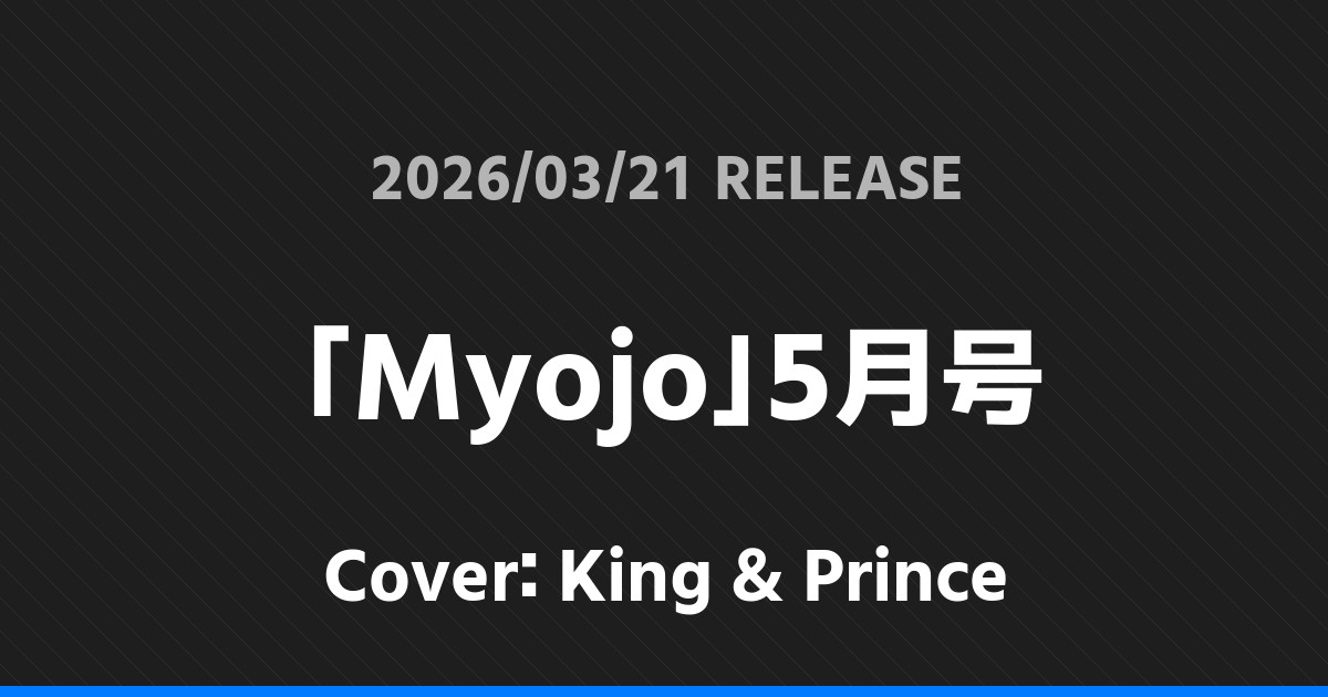 「Myojo」5月号表紙はKing & Prince! King & Prince 2026.02.202026.03.21 ※本ページにはプロモーションが含まれています。 商品リンク Amazon 楽天ブックス セブンネット タワーレコード 詳細情報 発売日:2026/03/21 表紙:King & Prince 「Myojo」5月号の表紙はKing & Princeさんです! スポンサーリンク 「BEST STAGE」4月号表紙は堂本光一! 「ちっこいMyojo」5月号表紙はKing & Prince! ホームKing & Prince
