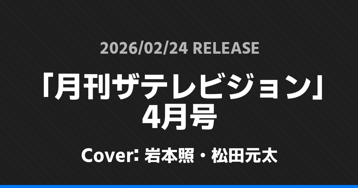 「月刊ザテレビジョン」4月号表紙は岩本照・松田元太! Snow Man 2026.02.172026.02.26 ※本ページにはプロモーションが含まれています。 商品リンク Amazon 楽天ブックス セブンネット タワーレコード 詳細情報 発売日:2026/02/24 表紙:岩本照・松田元太 「月刊ザテレビジョン」4月号の表紙は岩本照・松田元太さんです! スポンサーリンク 「ビッグコミック増刊」3月号表紙は目黒蓮・浜辺美波! 「おとなのデジタルTVナビ」4月号表紙は長尾謙杜・北村一輝! ホームSnow Man