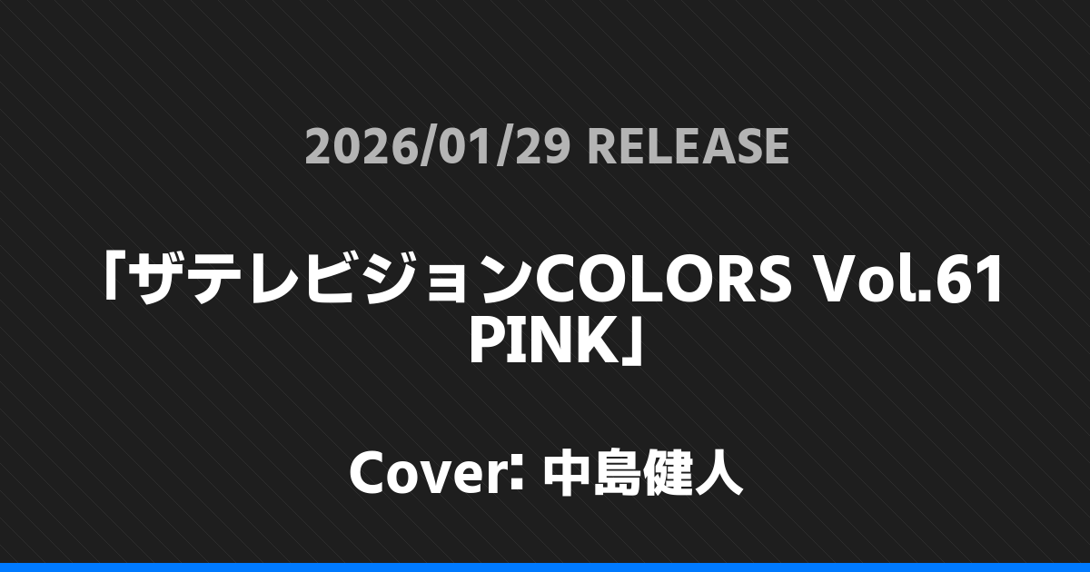 「ザテレビジョンCOLORS Vol.61 PINK」表紙は中島健人! 無所属 2026.01.162026.01.30 ※本ページにはプロモーションが含まれています。 商品リンク Amazon 楽天ブックス セブンネット タワーレコード 詳細情報 発売日:2026/01/29 表紙:中島健人 「ザテレビジョンCOLORS Vol.61 PINK」の表紙は中島健人さんです! 「Hanako」3月号表紙はAぇ! group! 「FINEBOYS+plus FACE」vol.4表紙は井上瑞稀! ホーム無所属