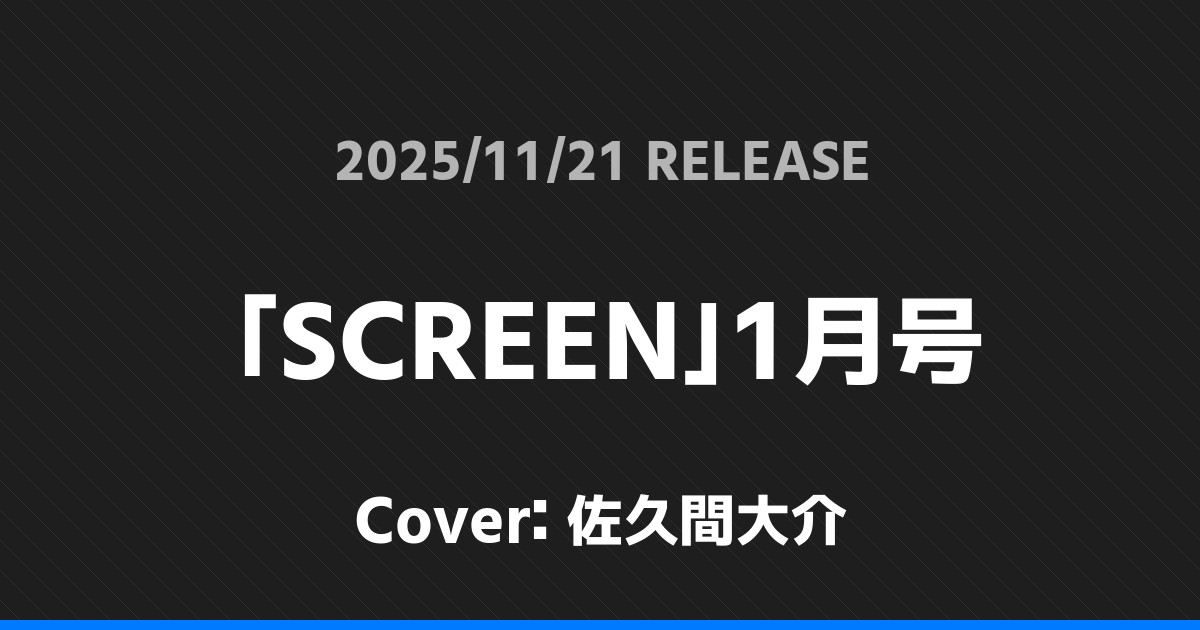 「SCREEN」1月号表紙は佐久間大介! Snow Man 2026.01.24 ※本ページにはプロモーションが含まれています。 商品リンク Amazon 楽天ブックス セブンネット タワーレコード 詳細情報 発売日:2025/11/21 表紙:佐久間大介 「SCREEN」1月号の表紙は佐久間大介さんです! 「月刊ザテレビジョン」1月号表紙は玉森裕太! 「デジタルTVガイド」1月号表紙は向井康二! ホームSnow Man