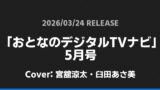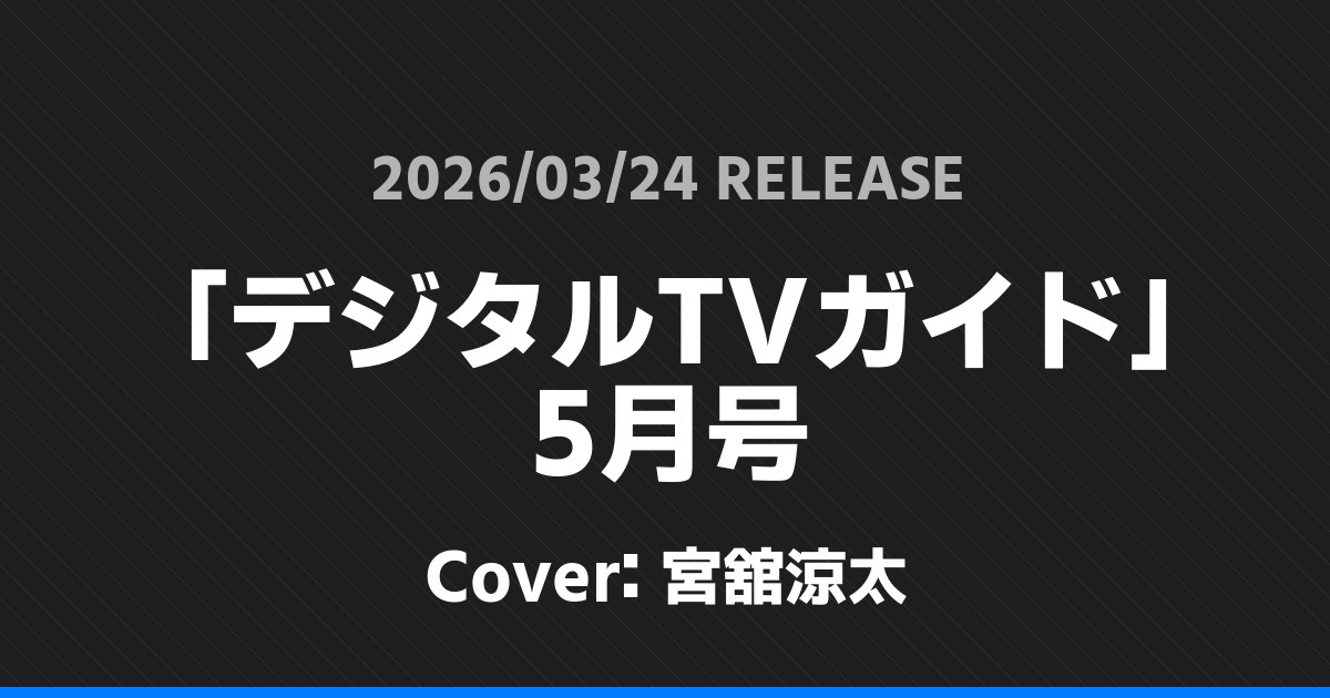 「デジタルTVガイド」5月号表紙は宮舘涼太! Snow Man 2026.03.012026.03.24 ※本ページにはプロモーションが含まれています。 商品リンク Amazon 楽天ブックス セブンネット タワーレコード 詳細情報 発売日:2026/03/24 表紙:宮舘涼太 「デジタルTVガイド」5月号の表紙は宮舘涼太さんです! スポンサーリンク 「CLASSY.」5月号 Special Edition表紙は山田涼介! 「Men’s PREPPY」5月号表紙は中村嶺亜! ホームSnow Man