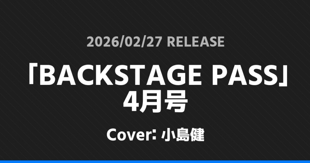「BACKSTAGE PASS」4月号表紙は小島健!