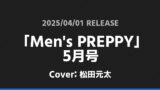 「Men’s PREPPY」4月号表紙は松倉海斗! Travis Japan 2026.01.242026.02.06 ※本ページにはプロモーションが含まれています。 商品リンク Amazon 楽天ブックス セブンネット タワーレコード 詳細情報 発売日:2026/02/28 表紙:松倉海斗 「Men’s PREPPY」4月号の表紙は松倉海斗さんです! 「シネマスクエア」vol.152表紙は菊池風磨・大森元貴! 「bis」2025年春号増刊表紙は中島健人! ホームTravis Japan
