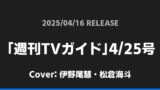「週刊TVガイド」4/25号表紙は伊野尾慧・松倉海斗!