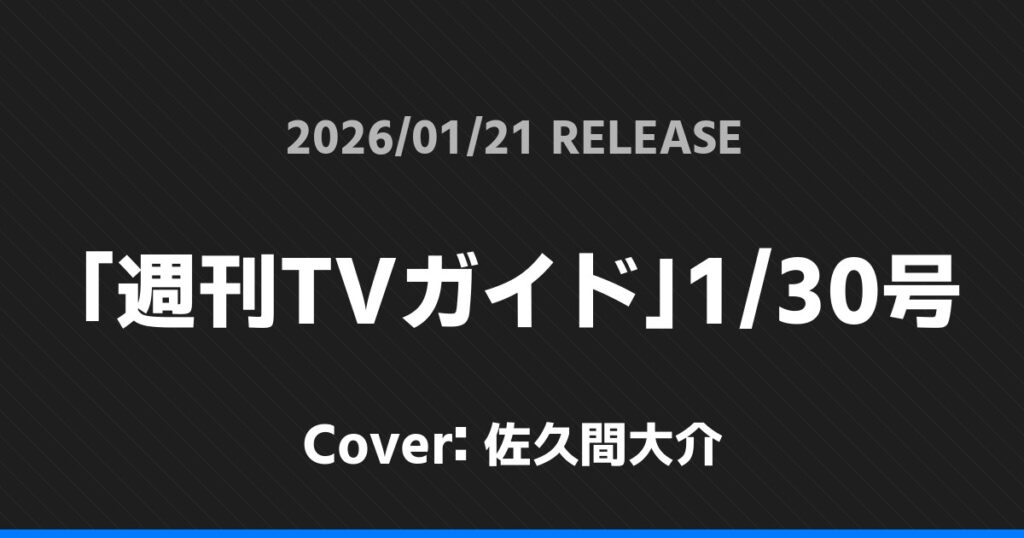 「週刊TVガイド」1/30号表紙は佐久間大介! Snow Man 2026.01.162026.01.24 ※本ページにはプロモーションが含まれています。 商品リンク Amazon 楽天ブックス セブンネット タワーレコード 詳細情報 発売日:2026/01/21 表紙:佐久間大介 「週刊TVガイド」1/30号の表紙は佐久間大介さんです! \📢表紙解禁/「週刊TVガイド2026年1月30日号」1/21(水)発売表紙『#白蛇浮生』#佐久間大介🪩LIVE REPORTTravis Japan⚾『じょうのにちじょう』藤原丈一郎✒連載大倉忠義横尾渉SixTONESetc.ご予約はこちら⬇️https://t.co/7jRlZpeE9q pic.twitter.com/kNGvCPqJUt— 東京ニュース通信社 PR担当 (@tokyonews_pr) January 16, 2026 「STAGE navi」vol.108表紙はSixTONES! 「Eye-Ai+」Vol.15表紙はB&ZAI! ホームSnow Man
