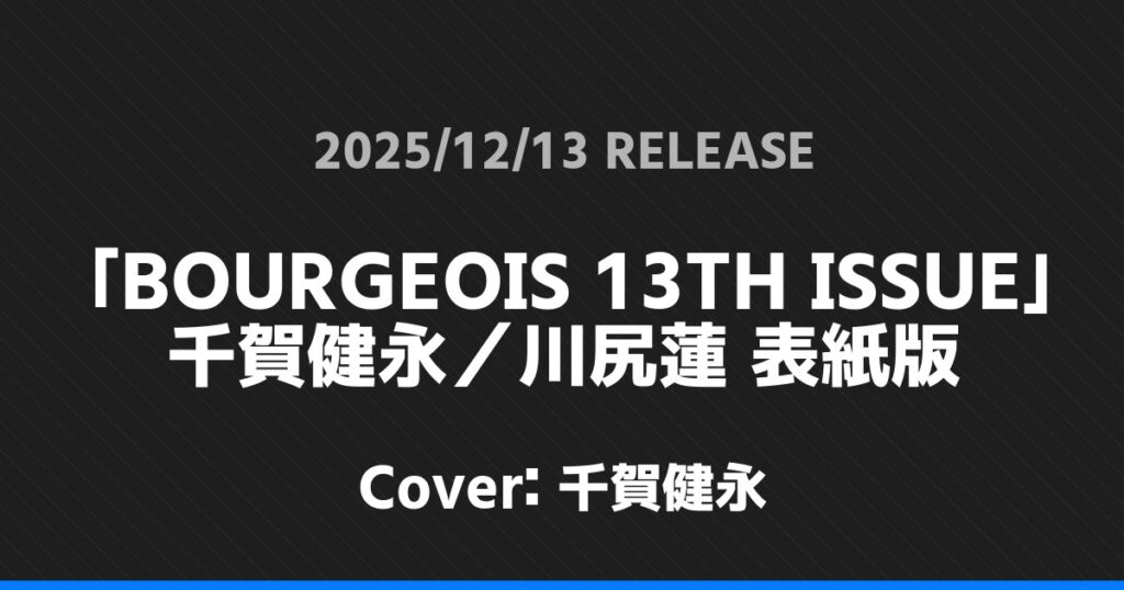 「BOURGEOIS 13TH ISSUE」千賀健永/川尻蓮 表紙版の表紙は千賀健永さんです!