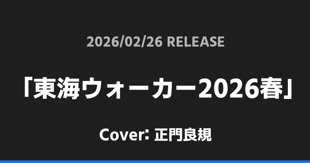 「東海ウォーカー2026春」表紙は正門良規! Aぇ! group 2026.01.192026.02.06 ※本ページにはプロモーションが含まれています。 商品リンク Amazon 楽天ブックス セブンネット タワーレコード 詳細情報 発売日:2026/02/26 表紙:正門良規 「東海ウォーカー2026春」の表紙は正門良規さんです! 🌸少し早いですが…🌸『#東海ウォーカー 2026春』2/26(木)発売!表紙には、単独としては約3年ぶり!Aぇ! group #正門良規 君が登場です🙌今号の第2特集である「パン」をテーマとしたグラビアを10Pで展開予定!パン職人になった正門君が見られるかも?お楽しみ!🍞#Aぇgroup… pic.twitter.com/GIEUCD21fk— 【公式】東海ウォーカー編集部 (@TokaiWalkers) January 19, 2026 「関西ウォーカー2026春」表紙は正門良規! 「ON VOICE」Vol.2表紙は末澤誠也! ホームAぇ! group