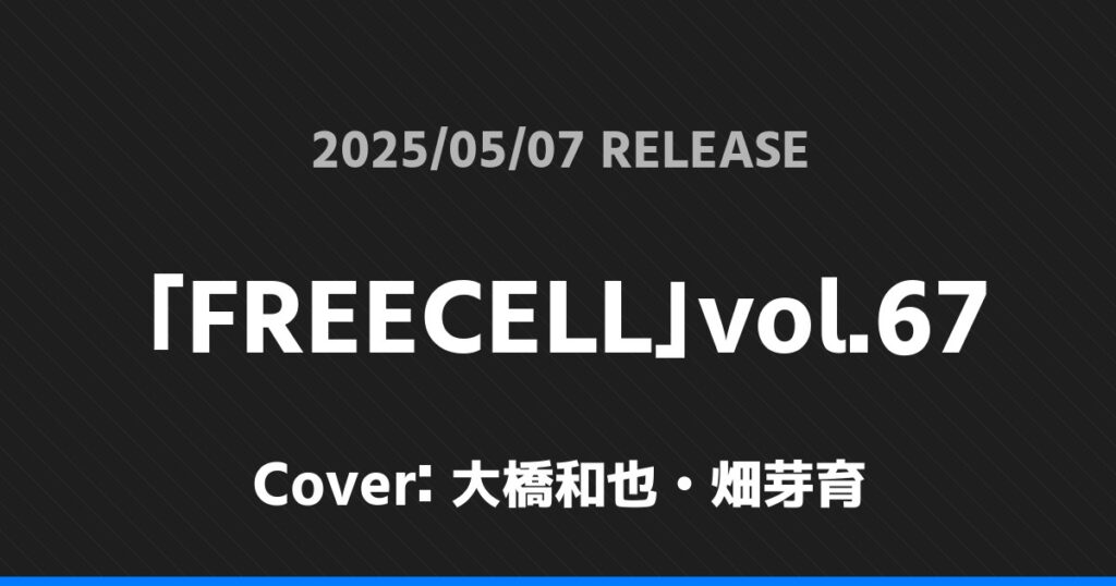 「FREECELL」vol.67表紙は大橋和也・畑芽育! なにわ男子 2026.01.24 ※本ページにはプロモーションが含まれています。 商品リンク Amazon 楽天ブックス セブンネット タワーレコード 詳細情報 発売日:2025/05/07 表紙:大橋和也・畑芽育 「FREECELL」vol.67の表紙は大橋和也・畑芽育さんです! 「GIANNA」#14 SPECIAL EDITION版表紙は深澤辰哉! 「TVガイドPLUS」vol.57表紙は中島健人! ホームなにわ男子