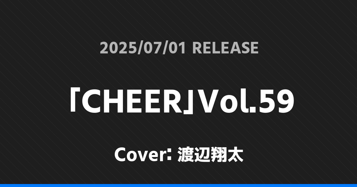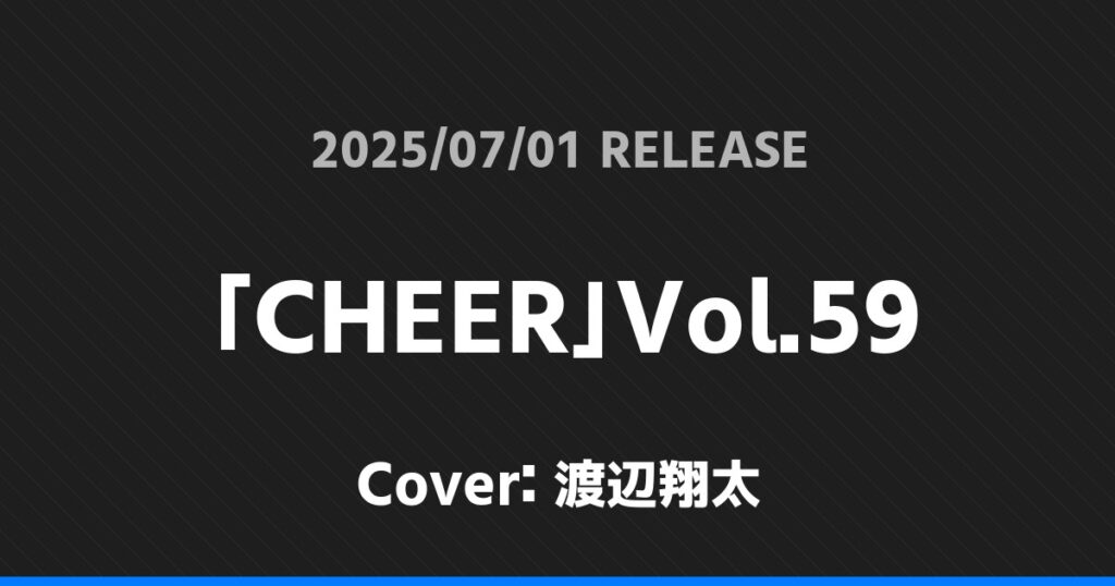 「CHEER」Vol.59表紙は渡辺翔太! Snow Man 2026.01.24 ※本ページにはプロモーションが含まれています。 商品リンク Amazon 楽天ブックス セブンネット タワーレコード 詳細情報 発売日:2025/07/01 表紙:渡辺翔太 「CHEER」Vol.59の表紙は渡辺翔太さんです! 「ESSE」8月号表紙は渡辺翔太! 「日本映画navi」vol.118表紙は渡辺翔太! ホームSnow Man