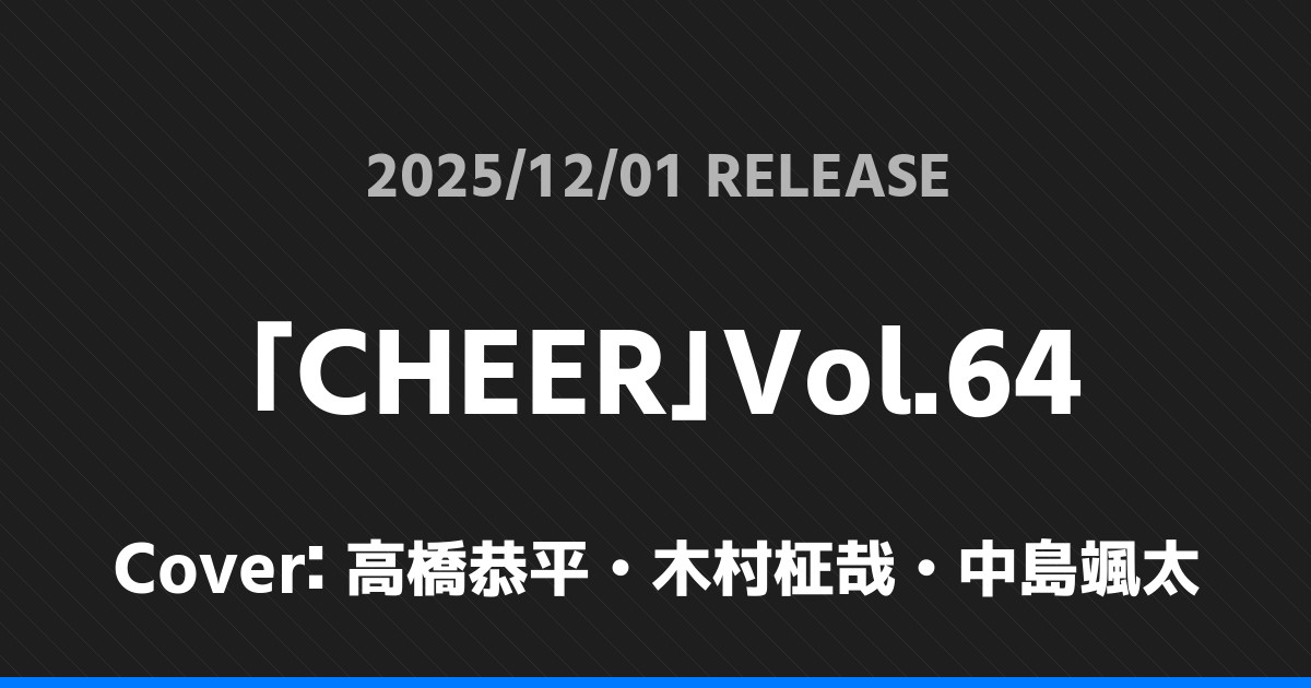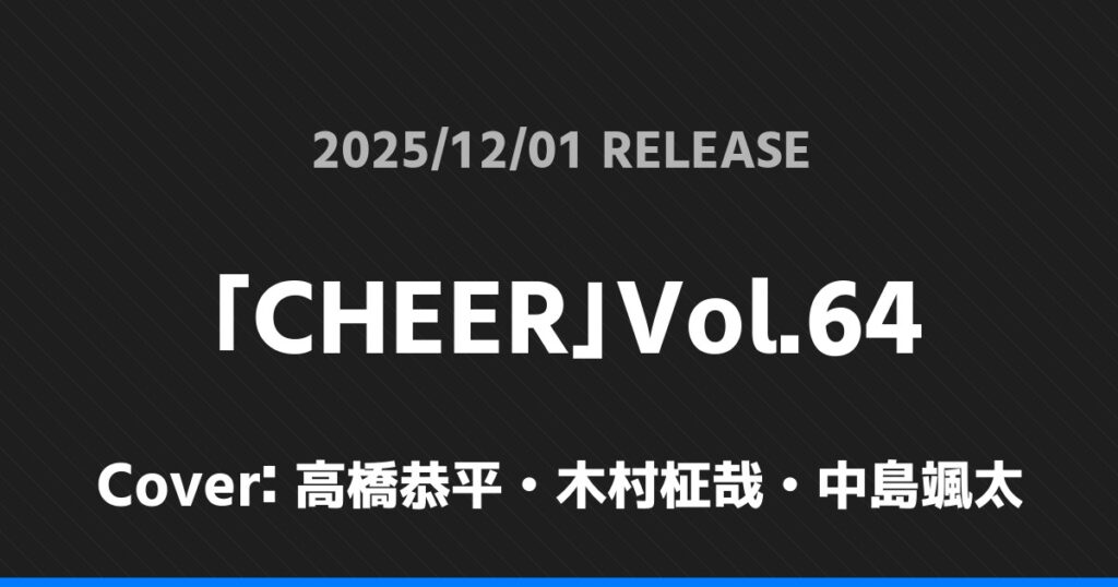 「CHEER」Vol.64の表紙は高橋恭平・木村柾哉・中島颯太さんです!