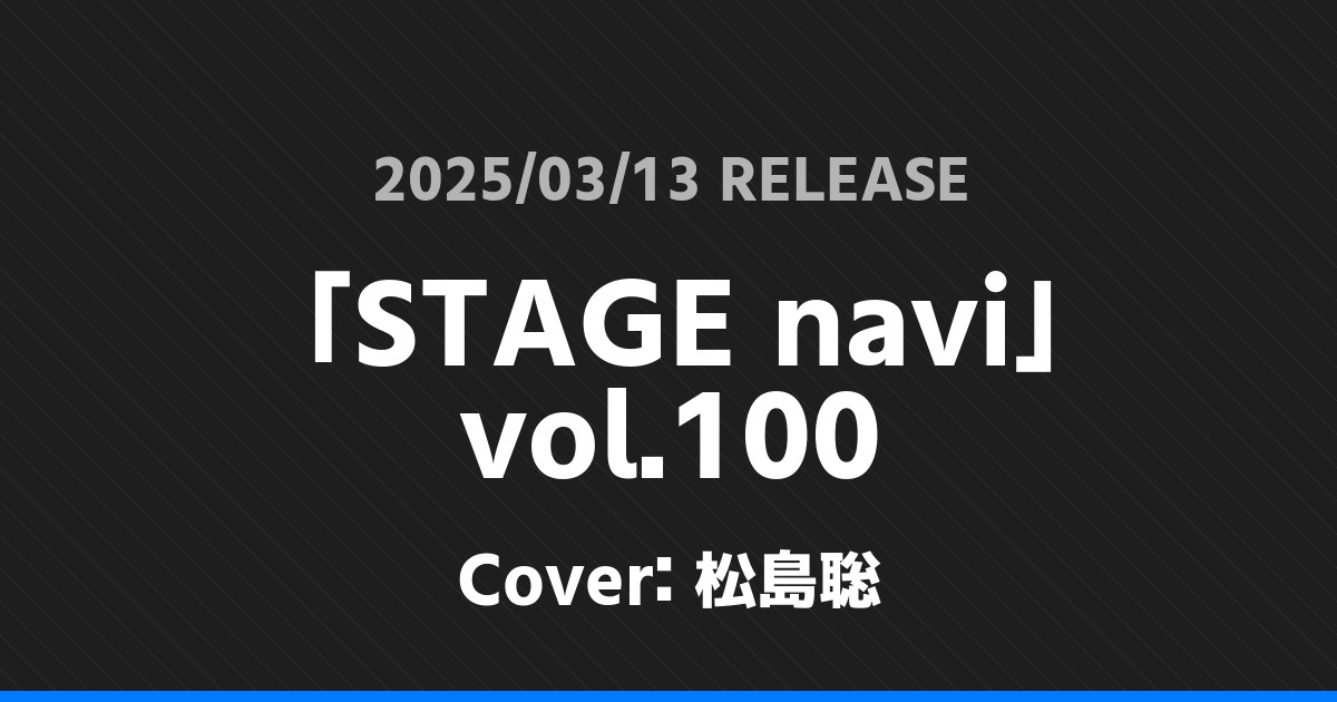 「STAGE navi」vol.100表紙は松島聡! timelesz 2026.01.24 ※本ページにはプロモーションが含まれています。 商品リンク Amazon 楽天ブックス セブンネット タワーレコード 詳細情報 発売日:2025/03/13 表紙:松島聡 「STAGE navi」vol.100の表紙は松島聡さんです! 「TVガイドPERSON」vol.151表紙は坂本昌行・増田貴久! 「QLAP!」4月号表紙は松田元太! ホームtimelesz