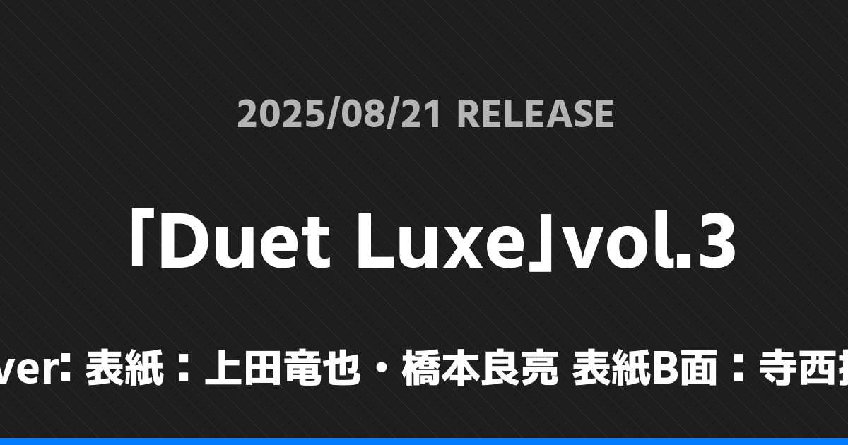「Duet Luxe」vol.3の表紙は表紙:上田竜也・橋本良亮 表紙B面:寺西拓人さんです!