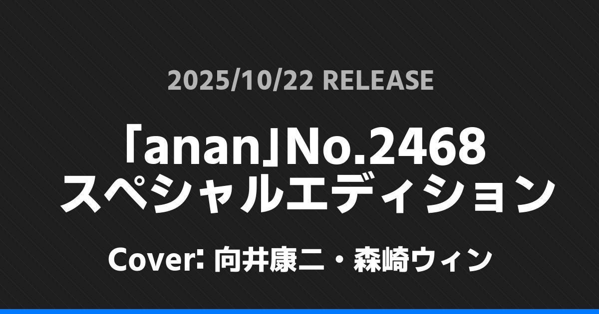 「anan」No.2468 スペシャルエディションの表紙は向井康二・森崎ウィンさんです!