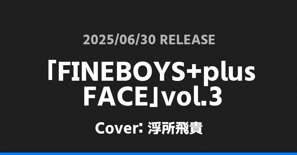 「FINEBOYS+plus FACE」vol.3表紙は浮所飛貴!