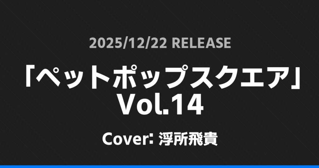 「ペットポップスクエア」Vol.14表紙は浮所飛貴! ジュニア 2026.01.24 ※本ページにはプロモーションが含まれています。 商品リンク Amazon 楽天ブックス セブンネット タワーレコード 詳細情報 発売日:2025/12/22 表紙:浮所飛貴 「ペットポップスクエア」Vol.14の表紙は浮所飛貴さんです! 「美的」2月号増刊 SPECIAL EDITION表紙は渡辺翔太! 「キネマ旬報NEXT」vol.69表紙は目黒蓮・浜辺美波! ホームジュニア