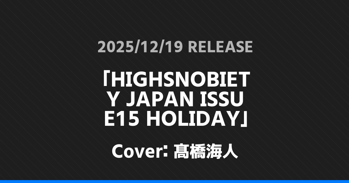 「HIGHSNOBIETY JAPAN ISSUE15 HOLIDAY」表紙は髙橋海人!