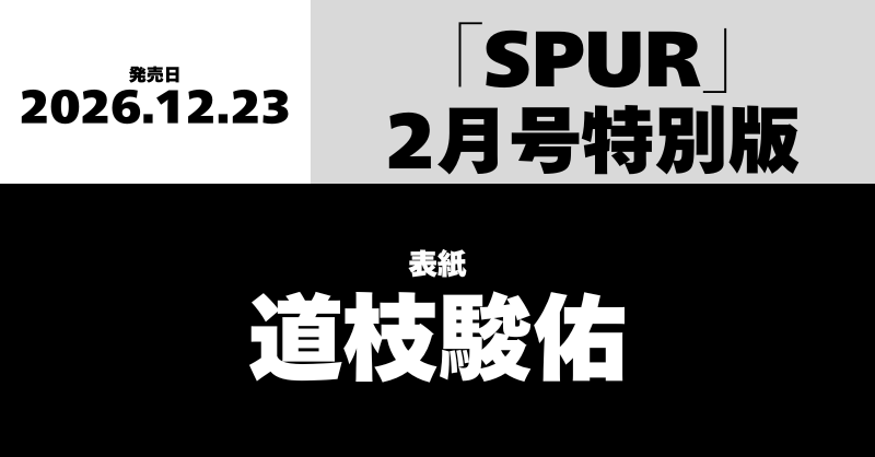 「SPUR」2月号特別版表紙は道枝駿佑 なにわ男子 2025.11.21 ※本ページはプロモーションを含みます。 商品リンク amazon 楽天ブックス タワーレコード セブンネット 詳細 発売日:2025/12/23 表紙:道枝駿佑