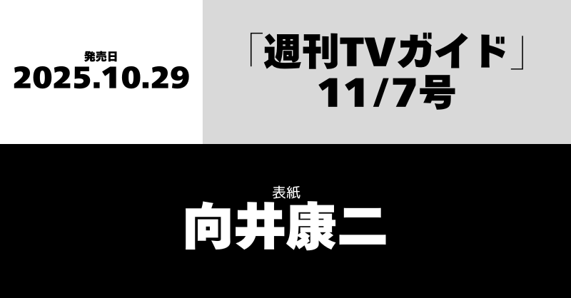 「週刊TVガイド」11/7号表紙は向井康二 Snow Man 2025.10.24 ※本ページはプロモーションを含みます。 商品リンク amazon 楽天ブックス タワーレコード セブンネット 詳細 発売日:2025/10/29 表紙:向井康二