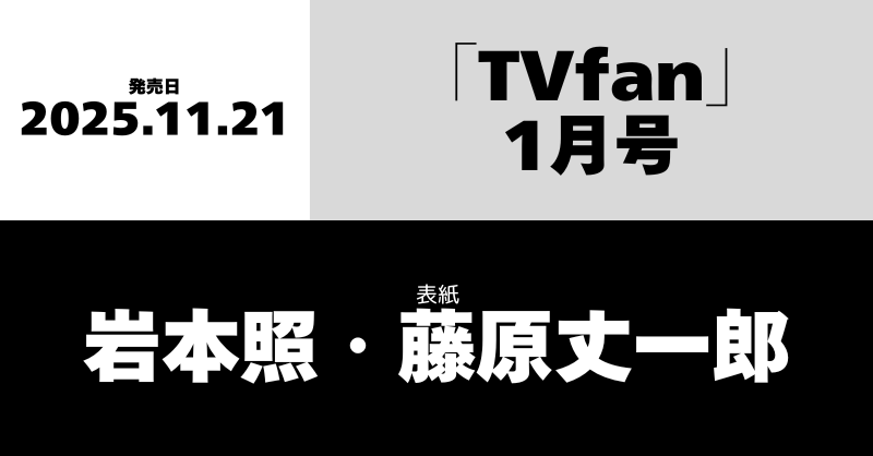 「TVfan」1月号表紙は岩本照・藤原丈一郎 Snow Man 2025.11.01 ※本ページはプロモーションを含みます。 商品リンク amazon 楽天ブックス タワーレコード セブンネット 詳細 発売日:2025/11/21 表紙:岩本照・藤原丈一郎